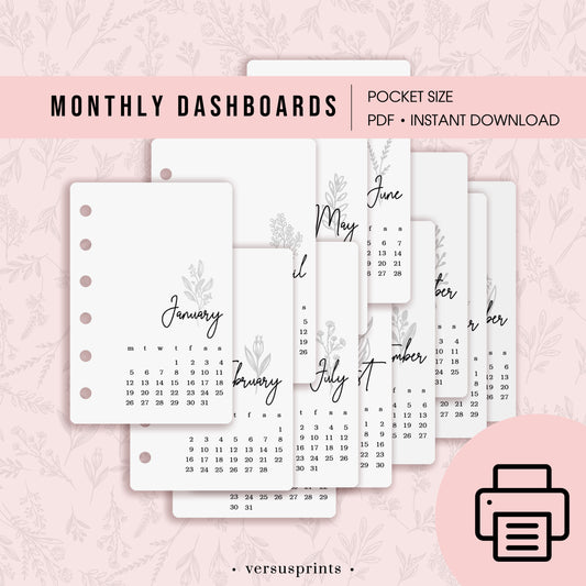 Refill Stampabile per Agenda POCKET, Calendario 2026 Mensile su 12 Pagine