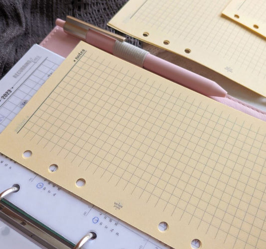 Inserti Notes A Quadretti Per Agende a 6 Anelli, in Carta Colorata Giallo Chiaro / Crema, Fronte e Retro