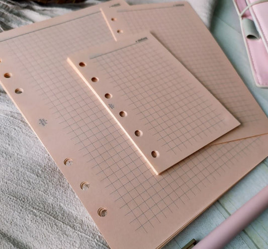 Inserti Notes A Quadretti Per Agende a 6 Anelli, in Carta Colorata Pesca, Fronte e Retro