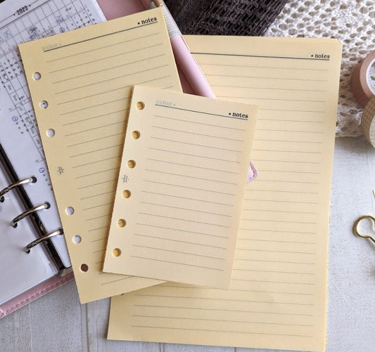 Inserti Notes A Righe Per Agende a 6 Anelli, in Carta Colorata Giallo Chiaro / Crema, Fronte e Retro