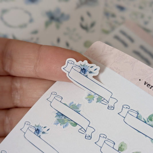 Kit di Adesivi di 4 Pagine per Planner e Journal, Tema Primaverile, Acquerello Floreale Blu