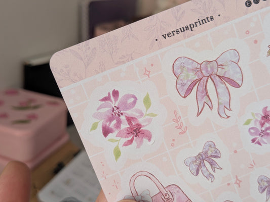 Foglio Stickers Illustrati Rosa e Lilla, Adesivi Fragole e Fiori per Agenda