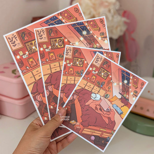 Cozy Studio Art Print, Warm Home Aesthetic, Original Illustration