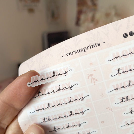 Script Week Day Planner Stickers for Undated Journals, Pink Date Covers