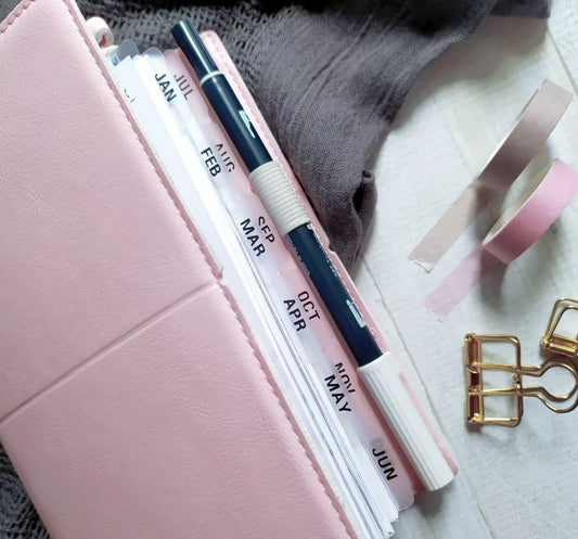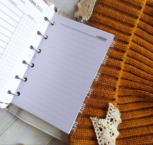Monthly Laminated White Dividers, Rose Gold Foil Tabs