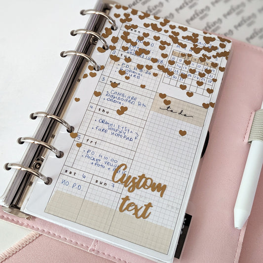 Custom Clear Planner Dashboard, Matt Gold Vinyl Hearts on Transparent PVC
