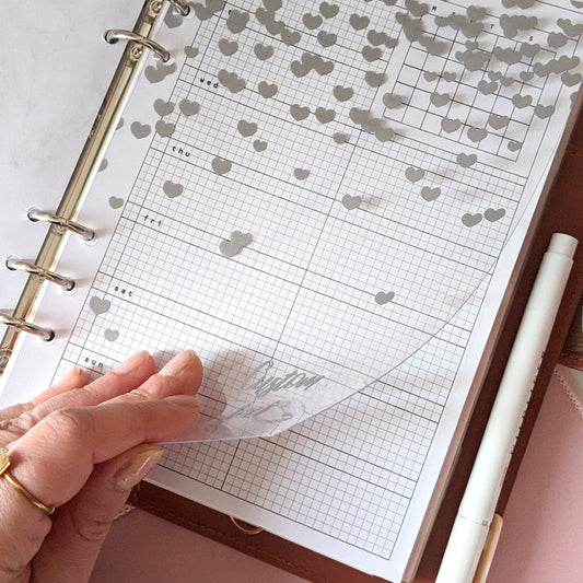 Custom Clear Planner Dashboard, Matt Silver Vinyl Hearts on Transparent PVC