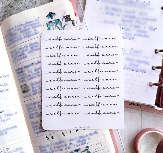 'Self Care' Clear Script Stickers