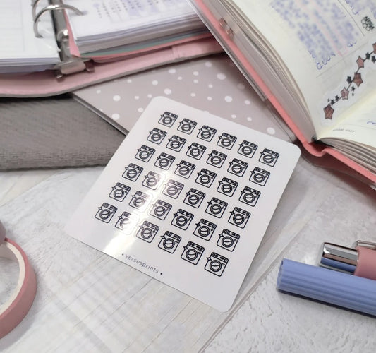 Clear Laundry Icon Stickers, Set of 36 Mini Washing Machine Planner Stickers