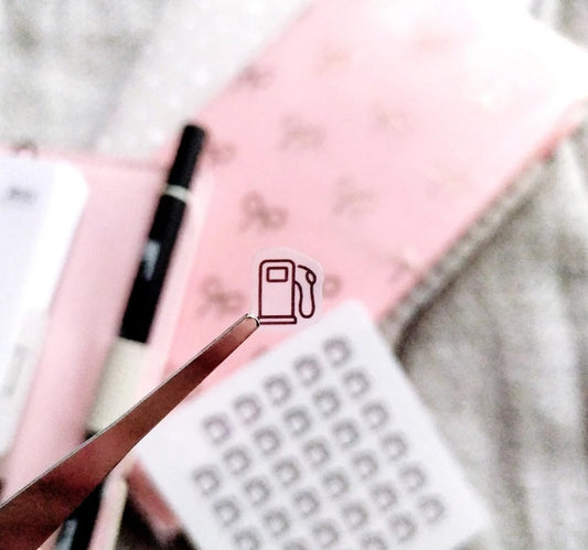 Gas Pump Icon Sticker, Clear Frosted Mini Fuel Stickers for Planning and Journaling, Car Mantenance Tracker