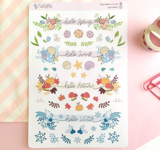 Seasons Planner Stickers, Hand-Drawn Stickers for Planners and Journals