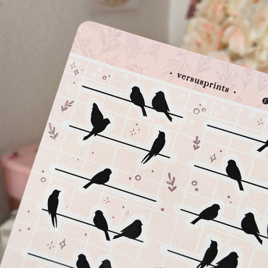 Planner Stickers, Birds on Wires, Decorative Minimal Journaling Stickers, Set of 16