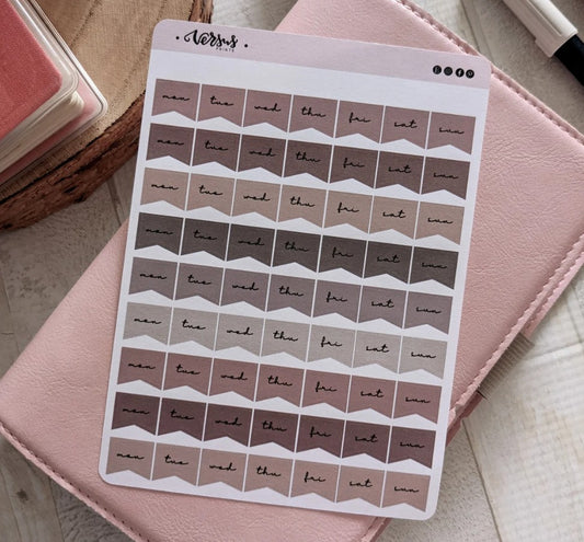Weekly Stickers, Mini Schedule Functional Planner Stickers, 9 Weeks, Beige/Nude Color Palette