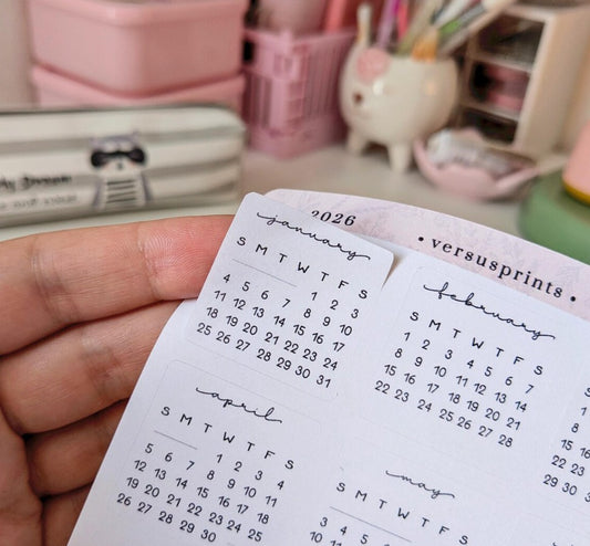 2026 Calendar Stickers, Monday or Sunday Start, 12 Mini Months for Journals, Funtional Planner Stickers