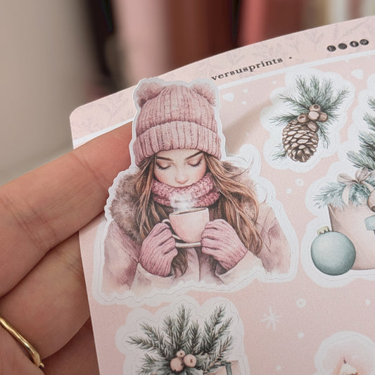 Winter Planner Sticker Sheet, Deco Stickers With Christmas Aesthetic, Green Sage and Light Pink Palette, Cozy Cottage Stickers