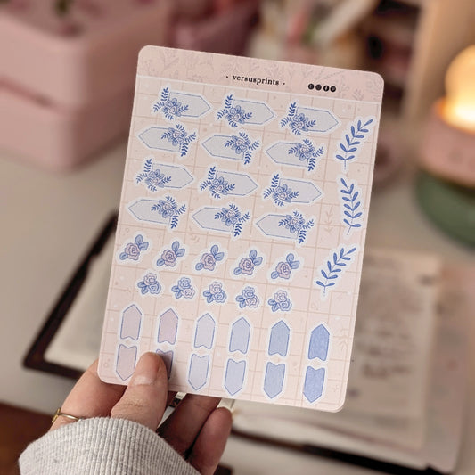 Blue and Purple Roses Stickers, Decorative Florals for Planners and Journals