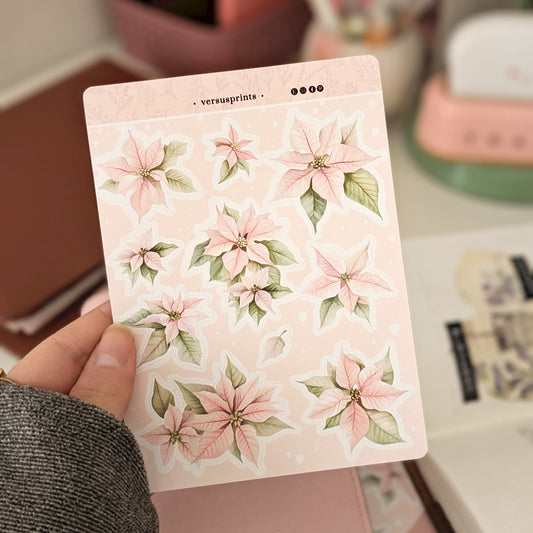 Poinsettia Sticker Sheet, Winter Rose Deco Stickers