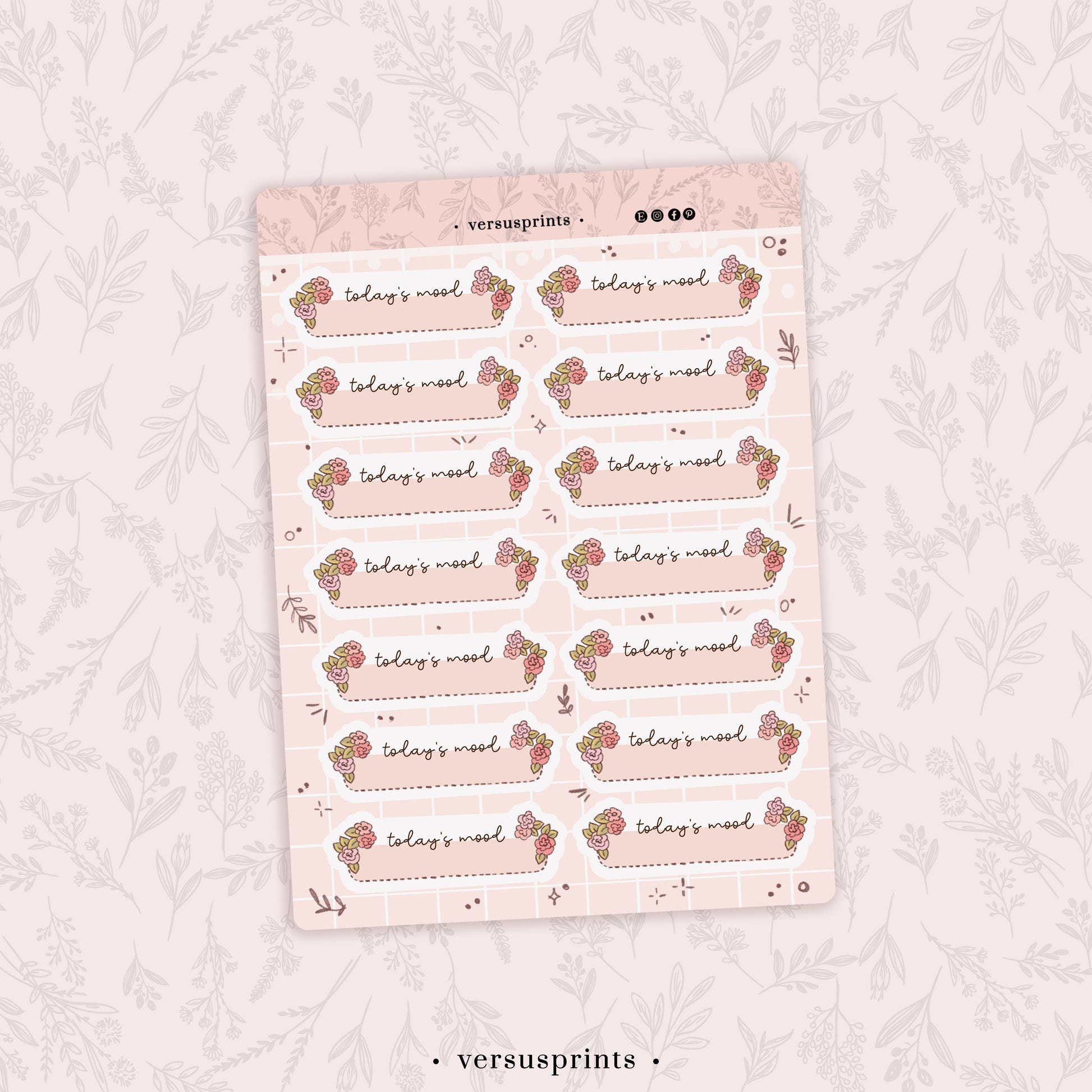 Today's Mood Stickers, Set of 14, Floral Cute Journal Daily Trackers