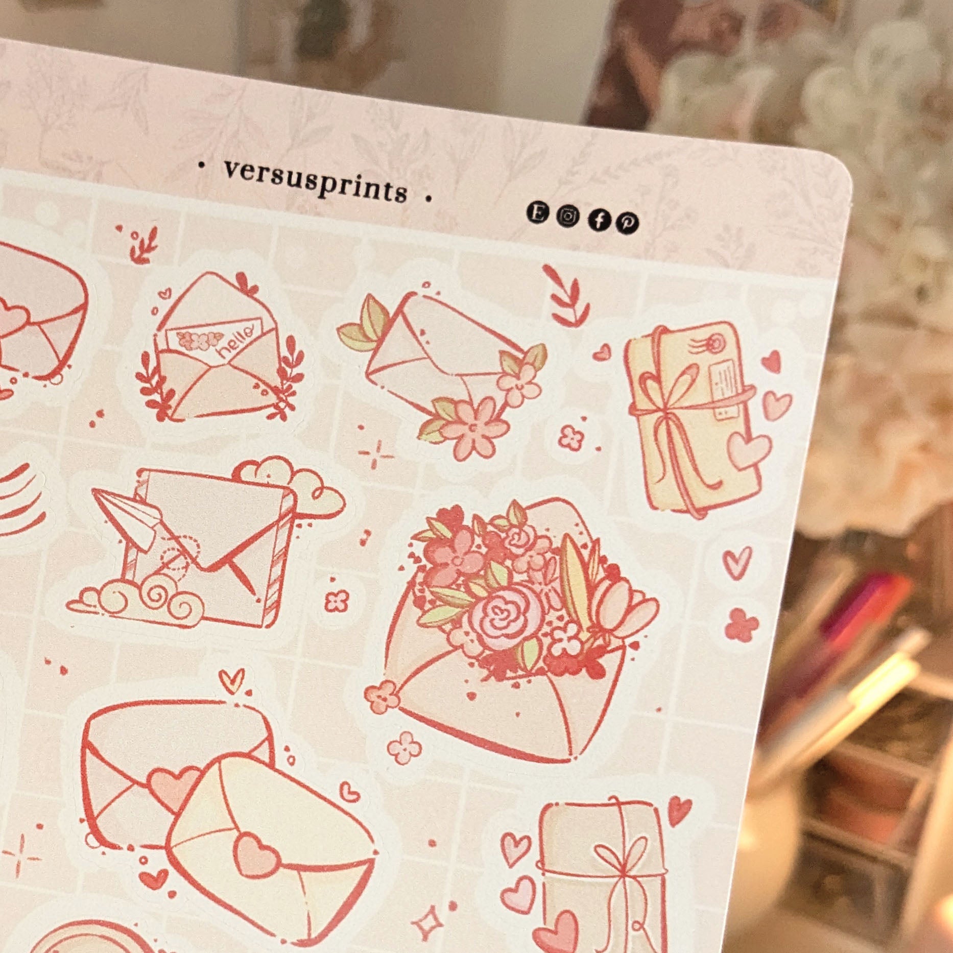 A set of decorative floral envelope stickers, with pink valentine vibes.