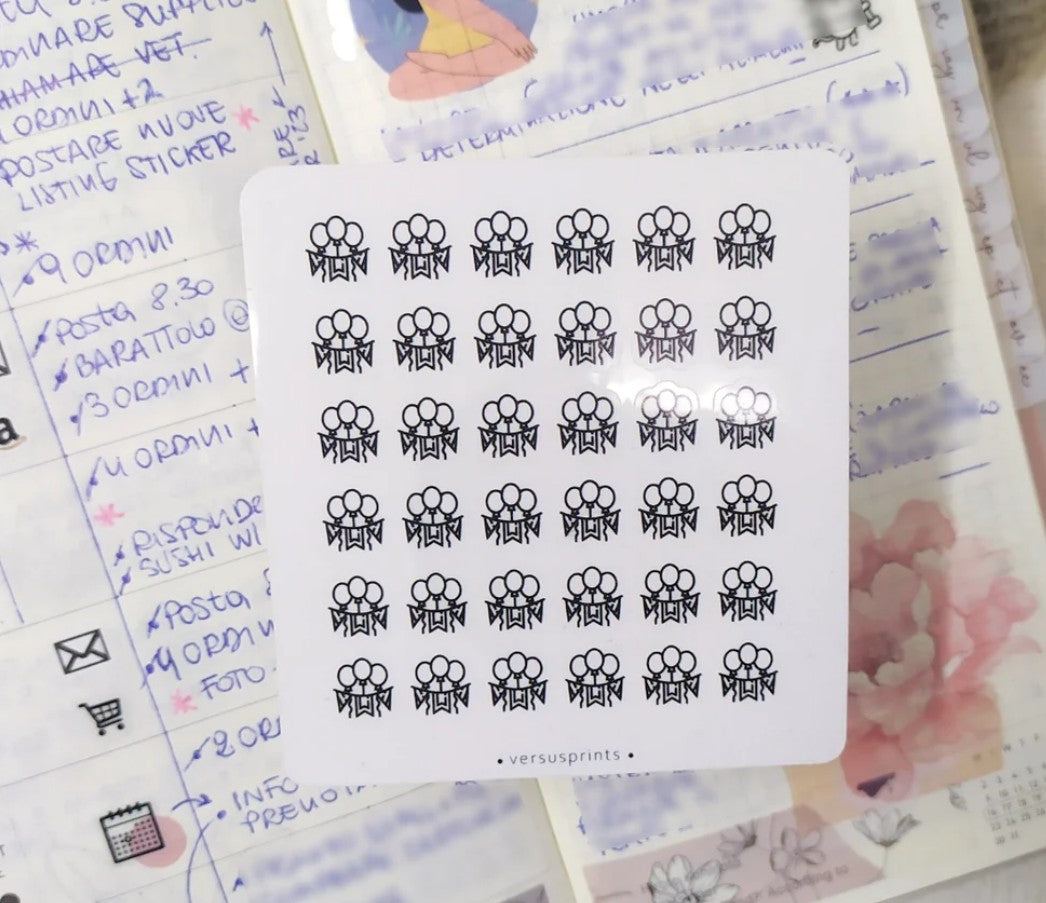 Frosted clear mini party banner icons, perfect for minimal planner layouts.