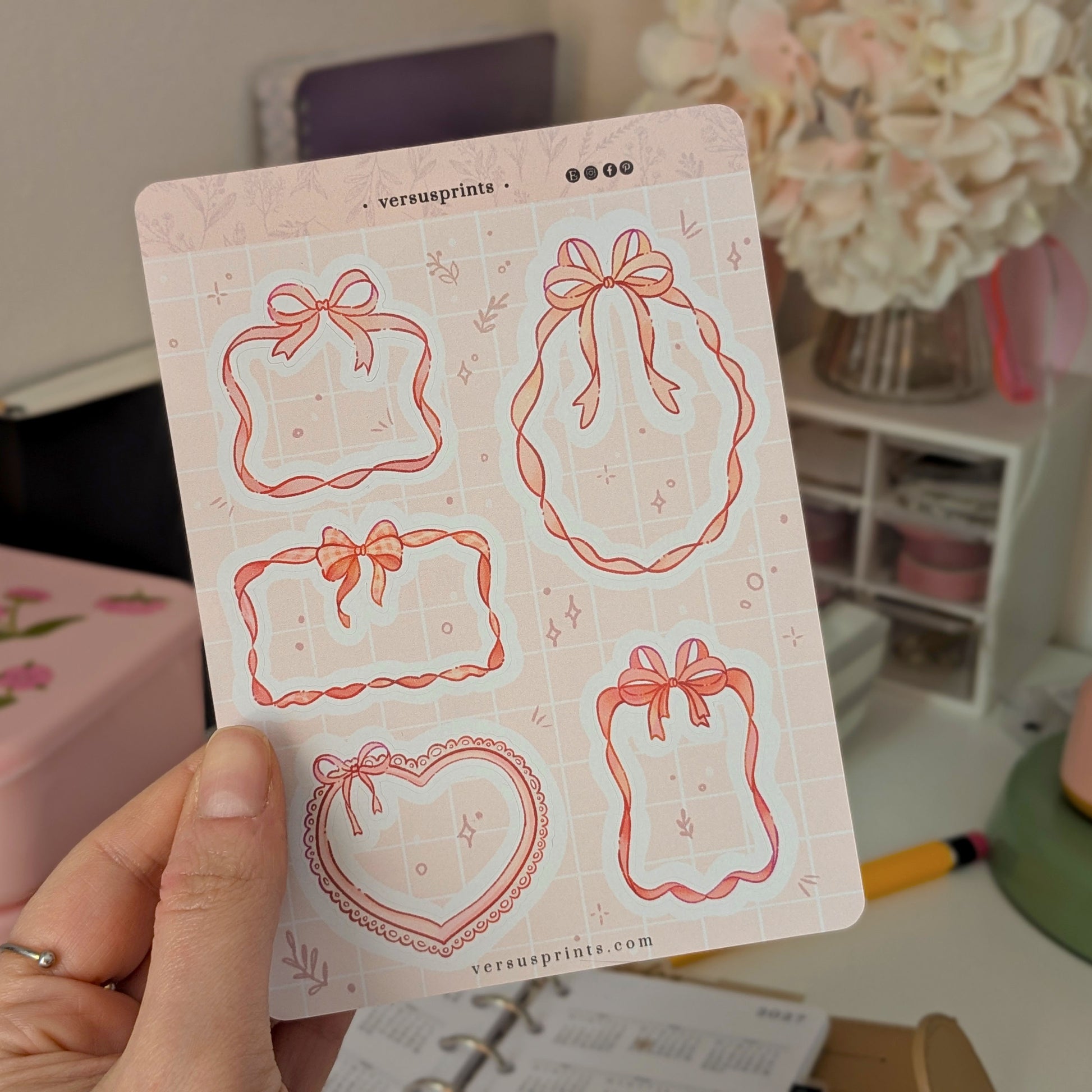 Adesivi a Forma di Cornice con Fiocchi, Sticker Coquette Rosa