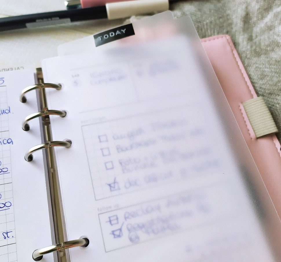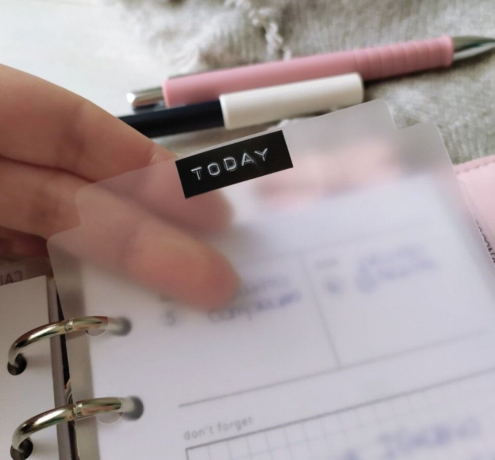 Segnalibro Today in PVC frosted, adatto per planner a 6 anelli in formato A5, Personal, A6 o Pocket.